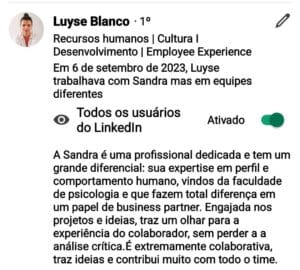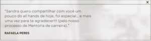 “Através da consultoria da Sandra pude ter acesso ao minicurso Autocuidado na prática e as dicas são tão práticas que consegui aplicar mesmo com a correria do trabalho e filhos. Me sinto outra pessoa!” – Ana P., 52 anos